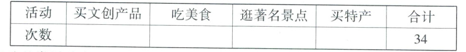 (1)请你把统计的结果填入下表。买特产的次数记录不小心被遮盖了,请你填出来。(4分)