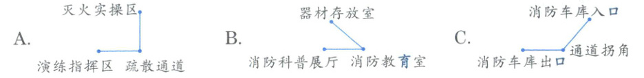 1. 消防局不同区域的布局各不相同,下面三个区域组成的角中,最小的是(