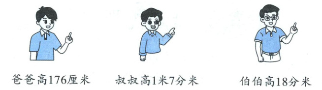 1. 将下面三个人按身高从高到矮的顺序排列。(填写身高)(6分)