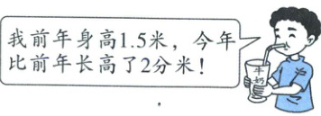 1. 儿童每天1杯牛奶有助于骨骼成长。奇奇哥哥坚持每天喝1杯牛奶,他今年身高是多少米?(4分)