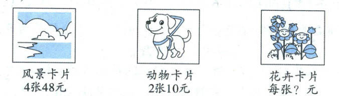 (1) 一张风景卡片与一张动物卡片相比,哪个贵?贵多少元?(4 分)