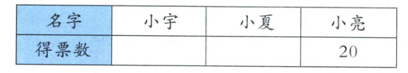 ①根据表中数据,在上面画“正”字表示出小亮的得票数,并结合上面记录的结果补全下表。