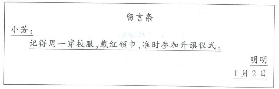 (一)12.明明 小芳 周一要穿校服,戴红领巾,准时参加升旗仪式 1月2日