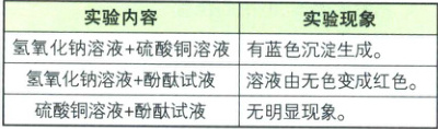 (1) 向试管中倒入少量氢氧化钠溶液,然后向其中加1~2滴硫酸铜溶液,振荡试管,观察现象。用同样的方法,分别向盛有少量氢氧化钠溶液和硫酸铜溶液的试管中滴加酚酞试液,观察现象。