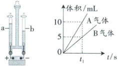 2.如图是电解水的简易装置和电解水生成气体体积与时间的关系图。