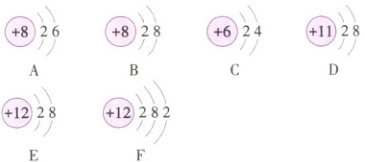 解析:原子中,质子数$=$核外电子数,故A、C、F为原子;阳离子中,质子数$>$核外电子数,故D、E为阳离子;阴离子中,质子数$<$核外电子数,故B为阴离子。