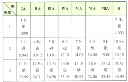 例6 元素周期表是学习和研究化学的重要工具。下表是元素周期表中的一部分,请按表中信息填空。