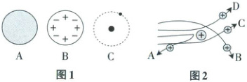 。(填图1中字母)【分析与应用】(3)当$\alpha$粒子轰击金箔时,运动轨迹不可能是图2中的