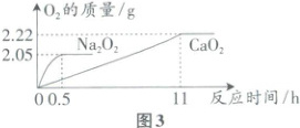 过氧化钙(CaO₂)和过氧化钠(Na₂O₂)均与水反应生成氧气,均可作供氧剂。10 g过氧化钠固体和10 g过氧化钙固体与足量水反应,生成氧气的质量与时间的关系如图3所示。