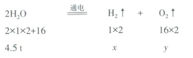答:电解4.5 t水,可制得氢气0.45 t,氧气7.2 t。