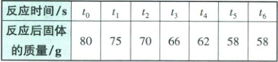解析:分析表格数据可知,在$t_4$时固体质量不再减小,说明碳酸钙完全分解。根据质量守恒定律,生成二氧化碳的质量为80g-58g=22g。根据碳酸钙分解的化学方程式,找出碳酸钙与二氧化碳的质量关系,再根据二氧化碳的质量计算出碳酸钙的质量,从而可以计算出碳酸钙的质量分数。