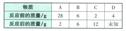 ,反应后D的质量是20