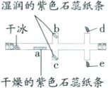 B.c处纸条先变红色,使石蕊变色的是$\mathrm{C O_2} $