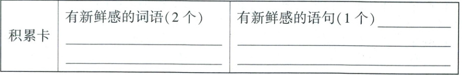 15. 文中有许多有新鲜感的词句,请你按要求摘抄在积累卡上。(4分)