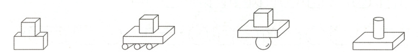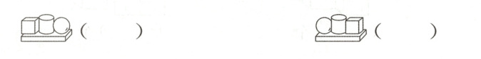 (2) 先摆一个长方体,在长方体的上面摆一个正方体、一个圆柱和一个球,把正方体摆在圆柱的左边,球摆在圆柱的右边。(4分)