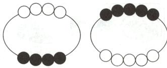 解析:第1幅图中,上面有1个●,下面有1个○;第2幅图中,上面有2个○,下面有2个●;第3幅图中,上面有3个●,下面有3个○。由此可发现规律:第几幅图,上、下就各有几个○或●,同时●和○的位置上下交替。所以第4幅图中,上面有4个○,下面有4个●;第5幅图中,上面有5个●,下面有5个○。