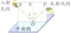 (1) 实验时,把一个平面镜放在水平桌面上,再把白色纸板$ENF$(右侧可绕$ON$翻折)竖直地立在平面镜上,纸板上的直线$ON$应