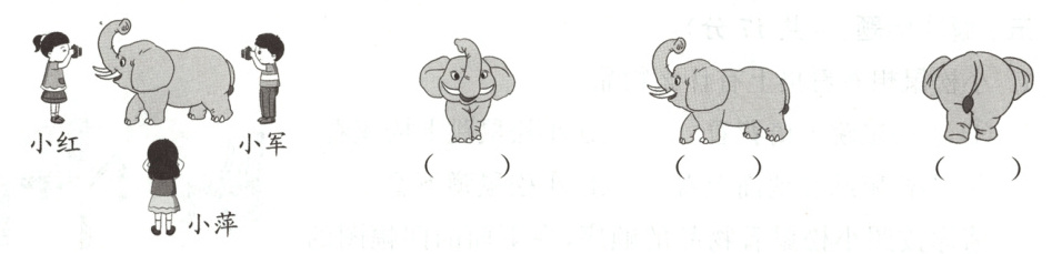 1. 下面的三幅图分别是谁拍摄到的?在括号里填上小朋友的名字。