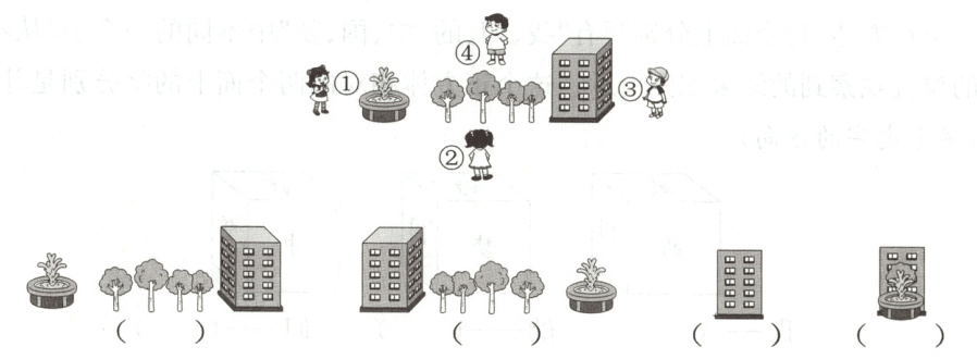 4. 下面的四幅图分别是哪个小朋友看到的?(填序号)