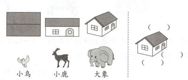 2. 小鸟、小鹿、大象在不同的位置观察同一座房子,看到了不同的图片,标出小动物们的位置。