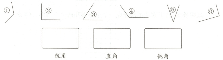 1. 把下面各角对应的序号填在合适的框里。(6分)