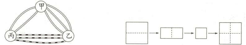 9. 如左下图,从甲地到乙地有3条路直达,从乙地到丙地有3条铁路直达,从甲地到丙地有2条小路直达,那么从甲地到丙地有(