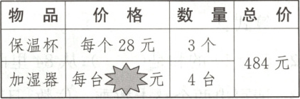 4. 公司购买了两种物品,下面是购买这两种物品的小票。王叔叔不小心把小票弄脏了。根据现有信息,你能算出一台加湿器多少元吗?(6分)