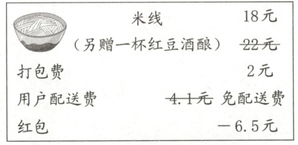 2. 新情境 生活体验 如图,王叔叔点了一份外卖。请你算一算,王叔叔点这份外卖应付多少元?(4分)