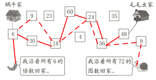 1. 请你帮毛毛虫和蜗牛找到回家的路。(毛毛虫回家的路线用实线连,蜗牛回家的路线用虚线连)(6分)