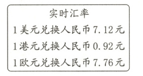 5. 如图所示为某天一家银行的汇率。这天, 同一块手表在美国纽约的标价为 80 美元, 在中国香港的标价为 610 港元, 在法国巴黎的标价为 62 欧元。这块手表在(_________)的标价最低。