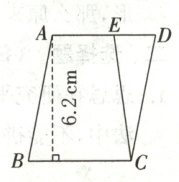 如图,在平行四边形ABCD中,边BC的长为5 cm,E是边AD上的一点,CE将平行四边形分成了一个梯形和一个三角形,它们的面积之差是18.6 cm²。梯形和三角形的面积分别是多少平方厘米?