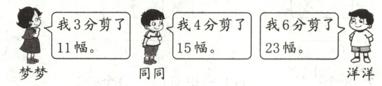 3. 梦梦、同同和洋洋剪同样的窗花,谁剪得最快?(5分)