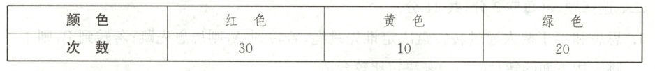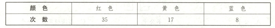 2. 盒子里有红、黄、蓝三种颜色不一、大小相同的小正方体若干个,小刚从盒子里任意取1个小正方体,记录它的颜色,再放回去摇匀,这样重复60次,记录如下: