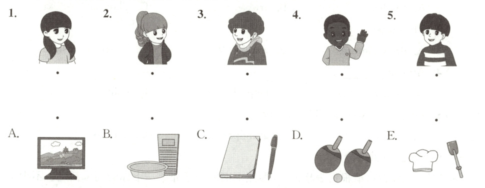 二、听录音,判断下列图片与所听内容是(T)否(F)相符。(每小题1分,共5分)