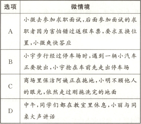 6. 下列微情境,能体现友善待人的是(