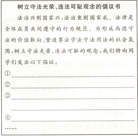 6.法治意识的培养,必须从青少年抓起。学习“树立法治意识”一课后,某校八年级(1)班正在开展探究性学习活动,请你参与,完成相关任务。