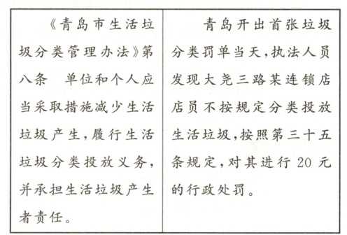 (2)结合材料分析,《青岛市生活垃圾分类管理办法》对维护垃圾分类投放秩序有何作用?