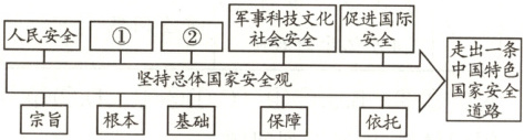 4. 2024年是总体国家安全观提出10周年。小安同学在学习“树立总体国家安全观”时制作了知识结构图,图中①②处应填 (