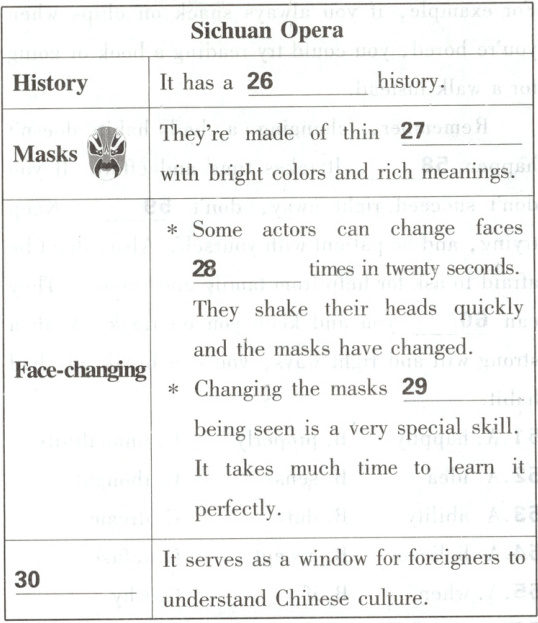 五、听短文,根据短文内容完成图表中所缺信息。短文念三遍。(共5小题;每小题1分,计5分)