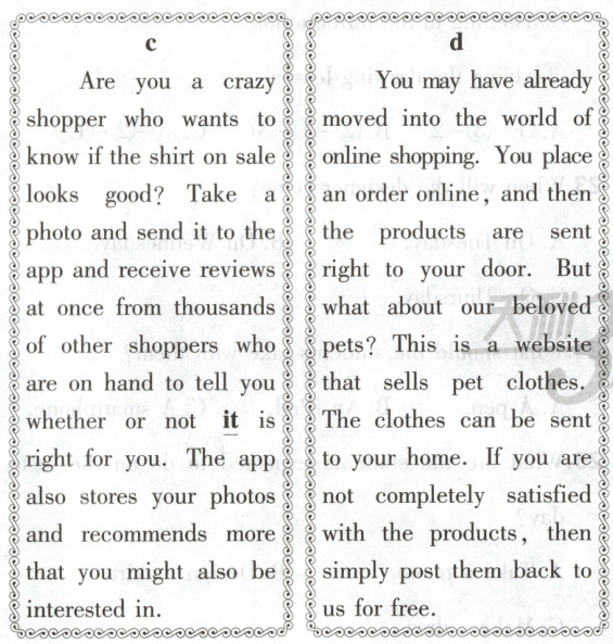 九、阅读下面两篇短文,根据短文内容选择最佳选项。(共10小题;每小题2分,计20分)