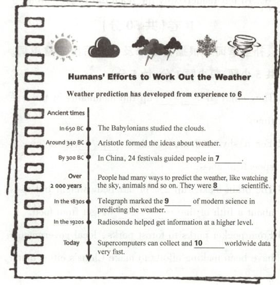 Humans have long tried to predict(预测) the weather. From the hunters of ancient times to today's pilots, predicting rain or shine can shape people's life and make a difference.