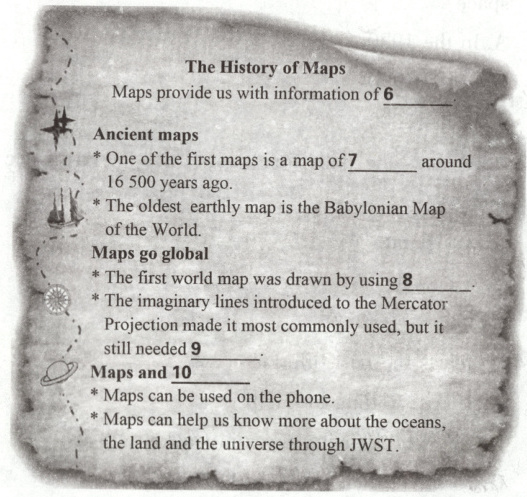 In the 19th and 20th centuries, modern technology allowed map makers to produce maps showing locations exactly. Today, many people view maps on their phones. Researchers are working to map the floor of the oceans and to locate every tree on Earth. Scientists are also trying to map the past by using the James Webb Space Telescope (JWST). This invention will collect light from stars and may find the secrets about the beginning of the universe (宇宙).