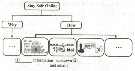你校英文报就“网络安全”这一话题征稿。请根据以下图示,以“Stay Safe Online”为题投稿。