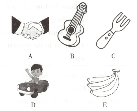 二、听句子,选择与所听句子内容相符的图片。每小题念两遍。(共5小题;每小题1分,计5分)