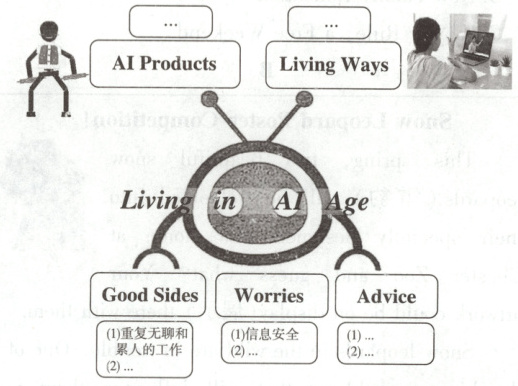 人工智能AI(Artificial Intelligence)技术的快速发展和DeepSeek的问世,给人们的学习和生活方式带来了巨大的变化。你校英文网站Teenager Says专栏正在就Living in AI Age这一话题进行讨论。请你根据以下图示写一篇短文发帖参与讨论。
