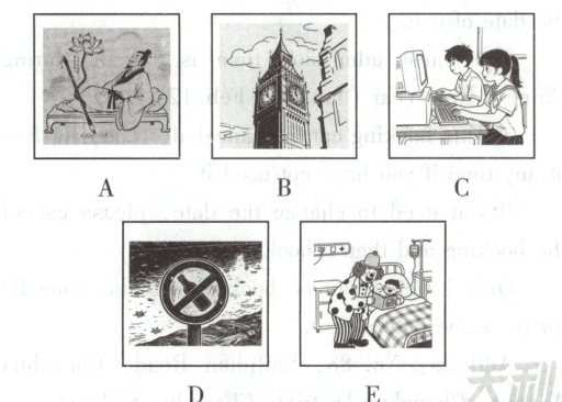 二、听句子,选择与所听句子内容相符的图片。每小题念两遍。(共5小题;每小题1分,计5分)