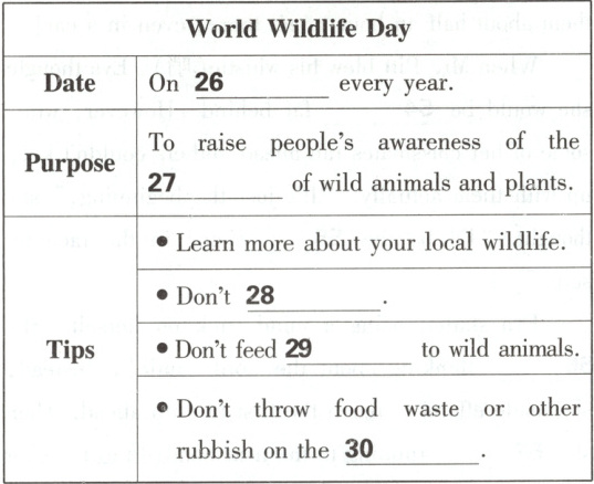 五、听短文,根据短文内容完成图表中所缺信息。短文念三遍。(共5小题;每小题1分,计5分)