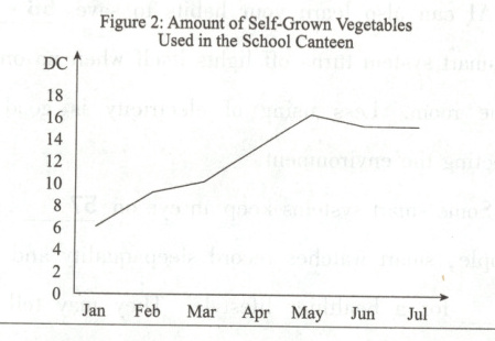 Leftover food is recycled in the school vegetable garden. The mixture of leftover food and soil grows good vegetables. We are now using more and more our own vegetables in the canteen(食堂), as Figure 2 shows.