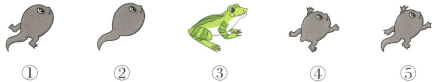 五、根据小蝌蚪的生长过程,给下面的图片排序。( 填序号 )