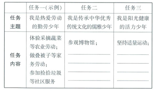 (2)(4分)任务一:学习采摘蔬菜的方法;使用农具时注意安全;等等。任务二:遵守博物馆的规定,不大声喧哗;认真学习了解展品信息,做好笔记;等等。